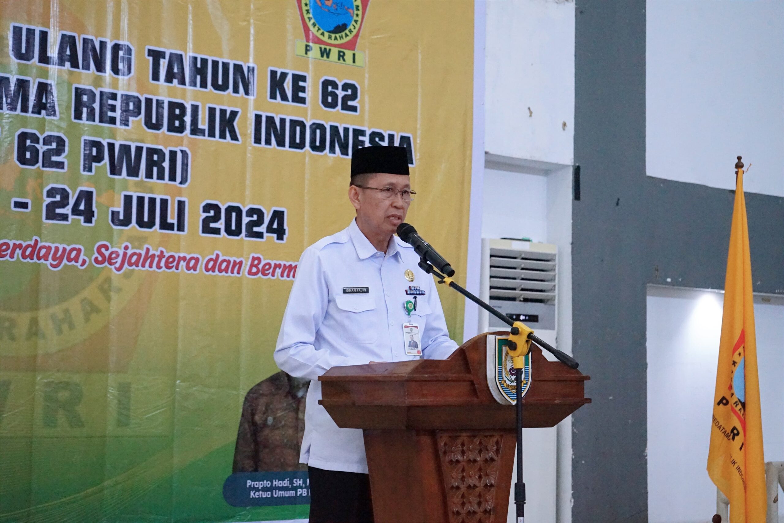 Dalam sambutannya, Isnan mengucapkan selamat atas pencapaian usia PWRI yang ke-62, seraya menegaskan peran strategis organisasi yang mewadahi para pensiunan Pegawai Negeri Sipil (PNS) ini dalam mendukung pembangunan daerah.