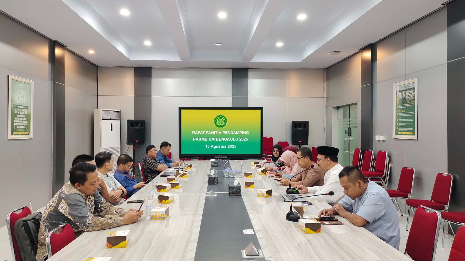Bengkulu, Beritaraffleisa.com,.- Panitia pelaksana Pengenalan Kehidupan Kampus bagi Mahasiswa Baru (PKKMB) Universitas Muhammadiyah Bengkulu menggelar rapat koordinasi di Ruang Rapat Kampus 1 UM Bengkulu, Jumat (15/8/2025).