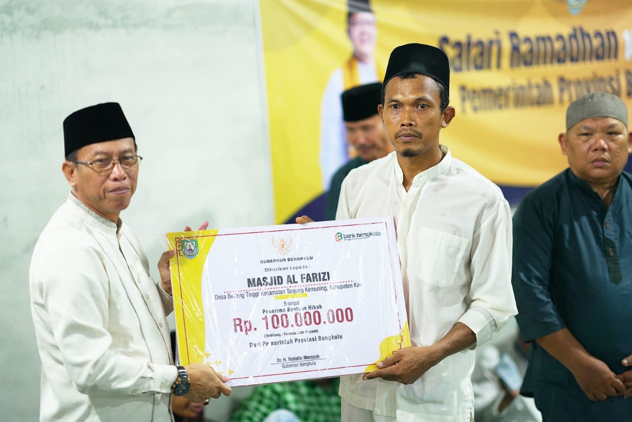 Kaur, Beritarafflesia.com- Pemprov Bengkulu menyerahkan bantuan dana hibah untuk 10 masjid di Kabupaten Kaur dalam rangka safari Ramadhan perdana.