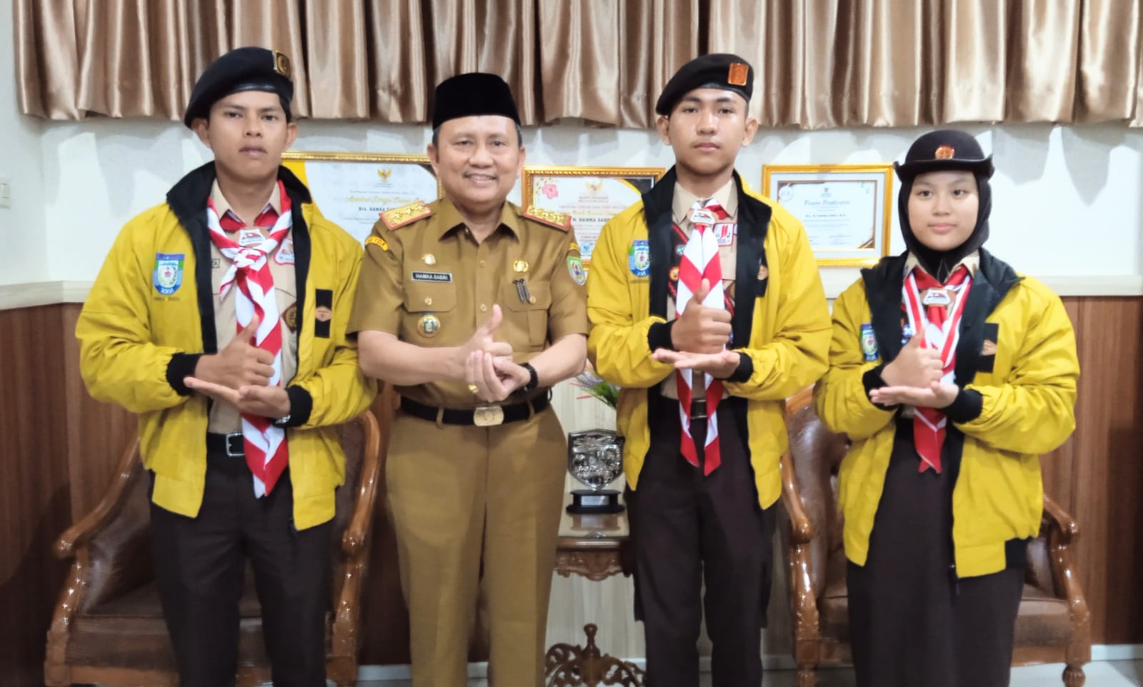 Bengkulu,Beritarafflesia.com- Sekretaris Daerah Provinsi Bengkulu Hamka Sabri yang juga menjabat Ketua Kwarda 07 Pramuka Provinsi Bengkulu melakukan Pelepasan Peserta Jambore Dunia Tahun 2023, di Ruang Kerja Sekretaris Daerah Provinsi Bengkulu, Senin (24/7/2023).