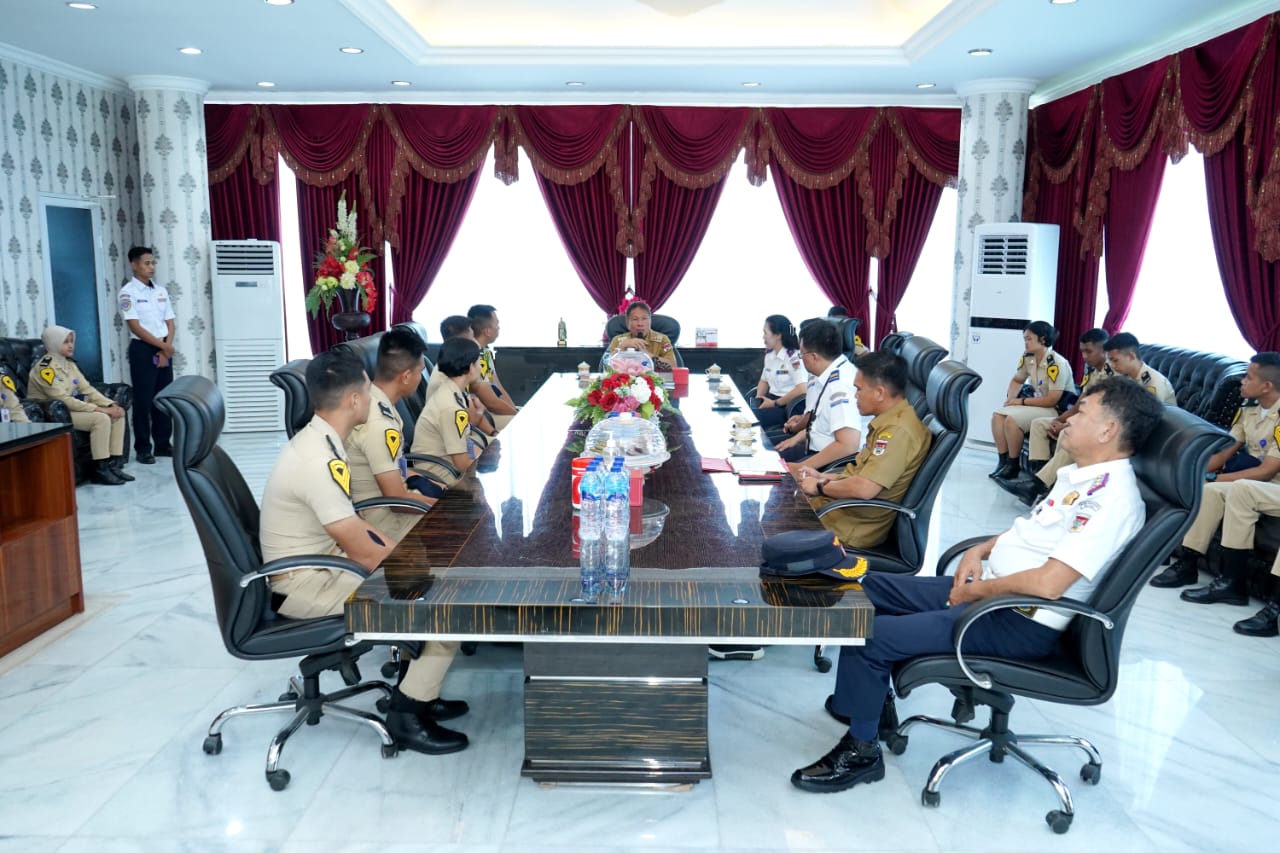 Minsel,Beritarafflesia.com — Bupati Minahasa Selatan (Minsel) Franky Donny Wongkar dan didampingi Wakil Petra Yani Rembang, Kepala Dinas Perhubungan Minsel Verra Y. Lasut, Kaban BKPSDM Minsel Sonny Makaenas, Kepala Dinas Kominfo Minsel Tusrianto Rumengan, menerima Kunjungan dari Taruna Politeknik Transportasi Darat Kementerian Perhubungan RI di kantor Bupati Minsel. Selasa, (7/03/23).