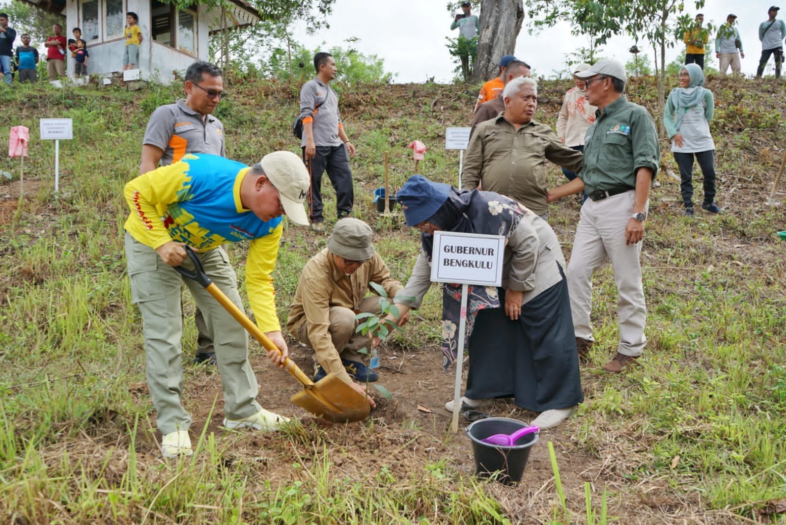“Melalui program rehabilitasi lahan dan penanaman seperti ini diharapkan hutan Bengkulu kembali pulih. Karena secara nasional hutan Bengkulu berkontribusi 10% terhadap penyerapan emisi gas rumah kaca.”