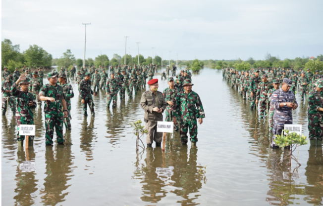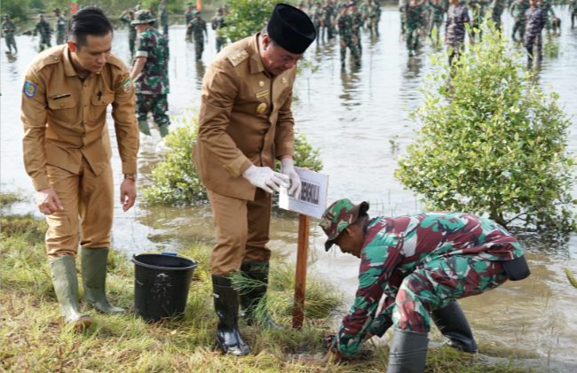 Penanaman pohon bertujuan melakukan penghijauan kembali kawasan lembam pinggir laut, mencegah abrasi dan memulihkan karbon.